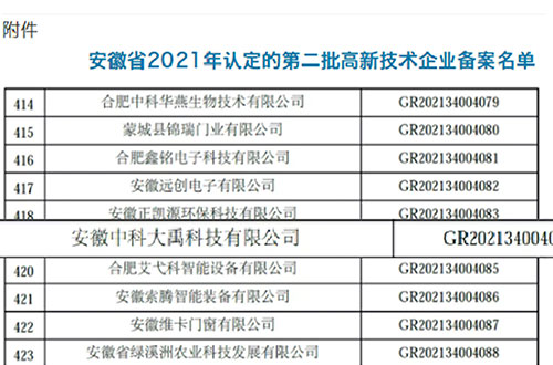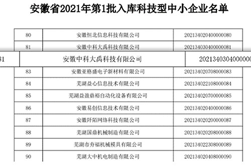 入選安徽省2021年第一批入庫(kù)科技型中小企業(yè)
